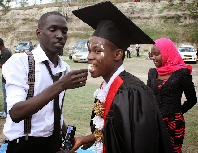 Gasto Shayo akimlisha Keki mdogo wake Martin Wakati wa mahafali ya Kidato cha nne yaliyofanyika katika Shule ya St Anne Marie iliyopo Mbezi Kwa MSuguri hapo.