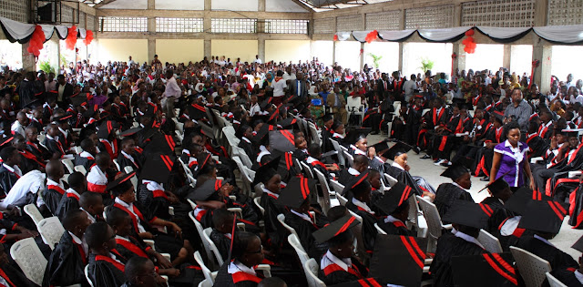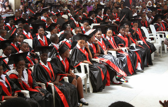 Baadhi ya Wanafunzi na Wageni waliofika katika shule ya St Anne Marie hapo jana wakati wa mahafali ya kidato cha nne..