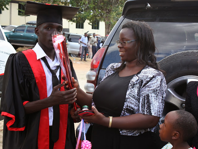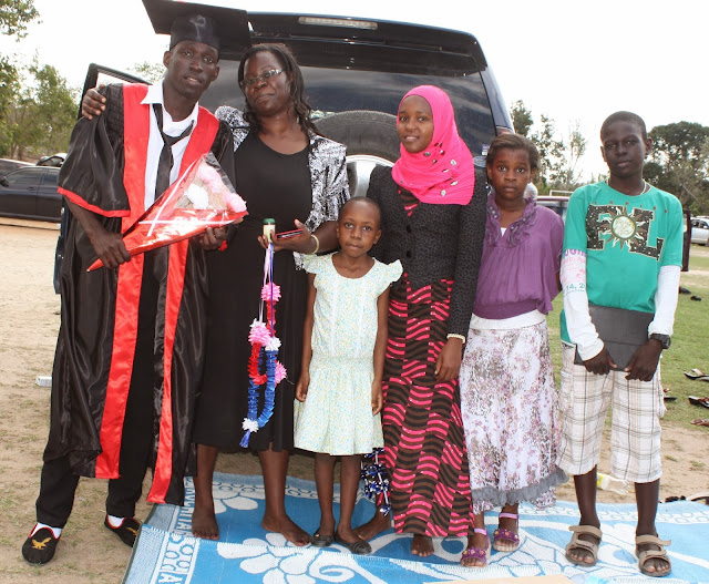 Gasto Shayo (mwenye joho) akiwa na Ndugu zake wakati walipokwenda kuhudhuria mahafali yake yaliyofanyika hapo jana katika Shule ya Sekondari ya St Anne Marie iliyopo Mbezi kwa Msuguli.Picha na Josephat Lukaza wa Lukaza Blog