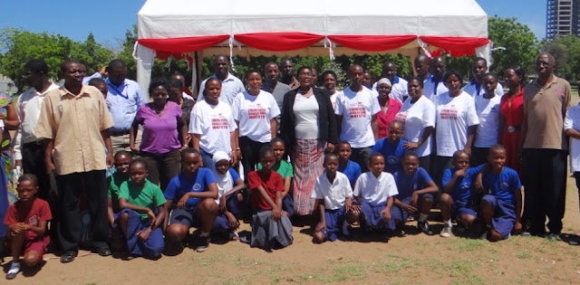 Picha ya Walimu, Wanafunzi, Waandaaji pamoja na mgeni rasmi. PICHA ZOTE NA CATHBERT ANGELO- KAJUNASON BLOG.