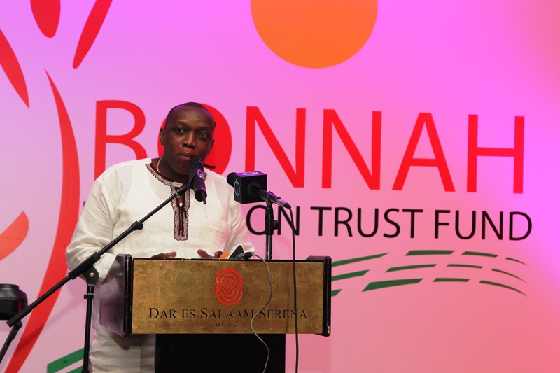 Katibu wa Bonnah Education Trust Fund, Mary Muwasa akizungumza machache ikiwa ni pamoja kuwatambulisha wadhamini mbali mbali waliojitolea ili kufanikisha harambee hiyo, iliyofanyika mwishoni mwa wiki kwenye Hoteli ya Serena Jijini Dar es Salaam.