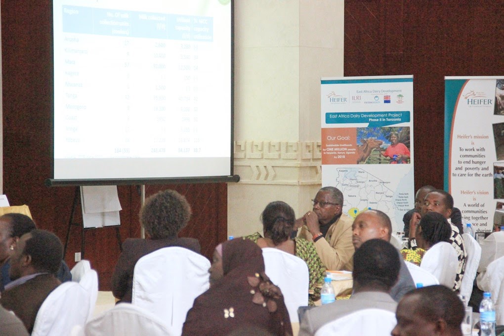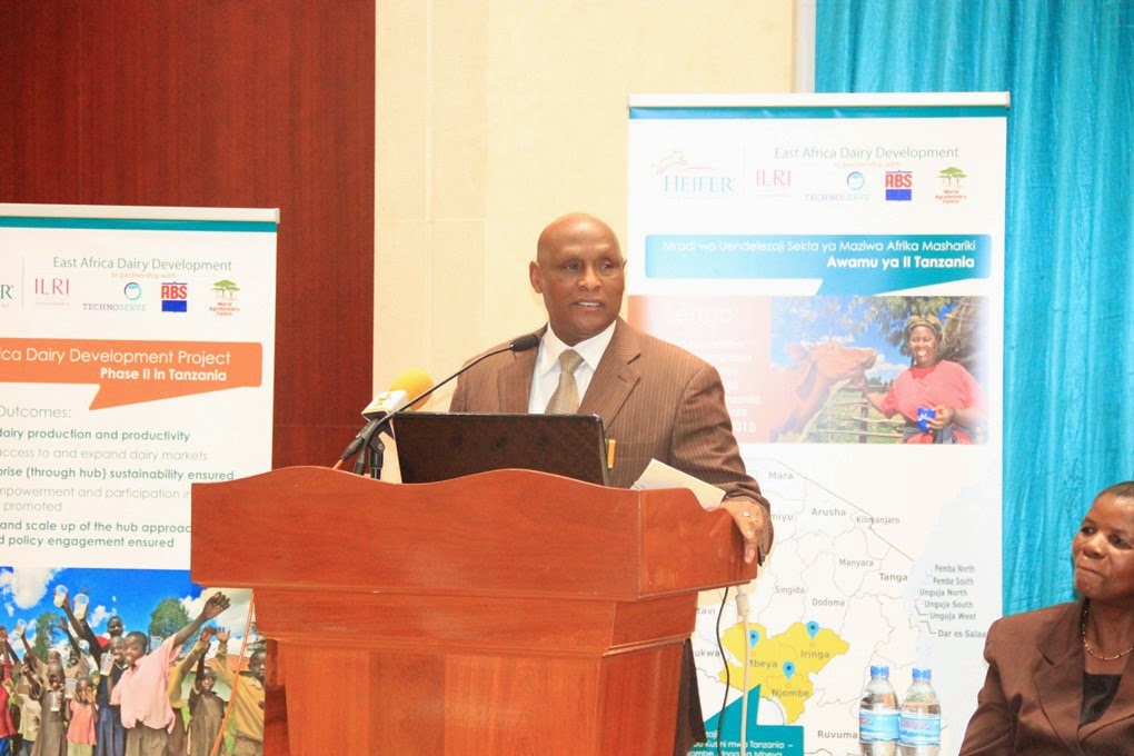 Mkurugenzi Mkuu wa Heifer International Tanzania, Dk Henry Njakoi akiongea na wageni waalikwa na wadau wa sekta ya maziwa nchini.