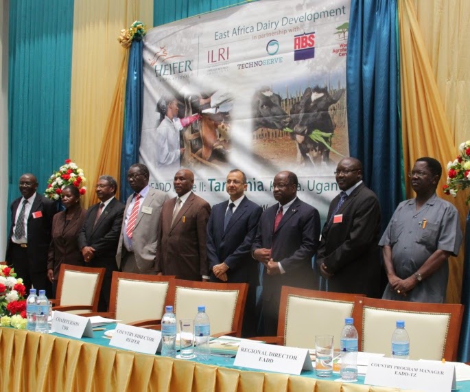 Mgeni rasmi katika uzinduzi huo ambae pia ni Naibu Waziri wa Maendeleo ya Mifugo na Uvuvi, Mh Kaika Telele akiwa katika picha ya pamoja na viongozi wa Heifer International Tanzania na EADD pamoja na wadau wa Sekta ya Maziwa Afrika Mashariki.