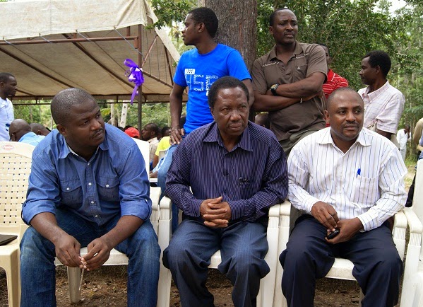 Mhariri wa gazeti la ThisDay, Fumbuka Ng’wanakilala (aliyebeba msalaba), pamoja na wadogo zake, Lugendo (kushoto) na Manyanda (kulia), wakiwaongoza waombolezaji waliobeba jeneza lenye mwili wa Baba yao, Marehemu Mwl. Nkwabi Ng’wanakilala baada ya kuwasili nyumbani kwao Kibamba nje kidogo ya Jiji la Dar es Salaam Julai 01 mwaka huu, kwaajili mazishi. Mwl. Ng’wanakilala, ambaye alikuwa Mhadhiri katika Idara ya Habari na Mawasiliano ya Umma ya Chuo Kikuu cha Mtakatifu Augustino (SAUT), jijini Mwanza alifariki Juni 27, katika Hospitali ya Bugando baada ya kusumbuliwa na matatizo ya figo na tumbo. Marehemu Nkwabi Ng’wanakilala amezikwa Jumanne ya Julai Mosi, jijini Dar es Salaam