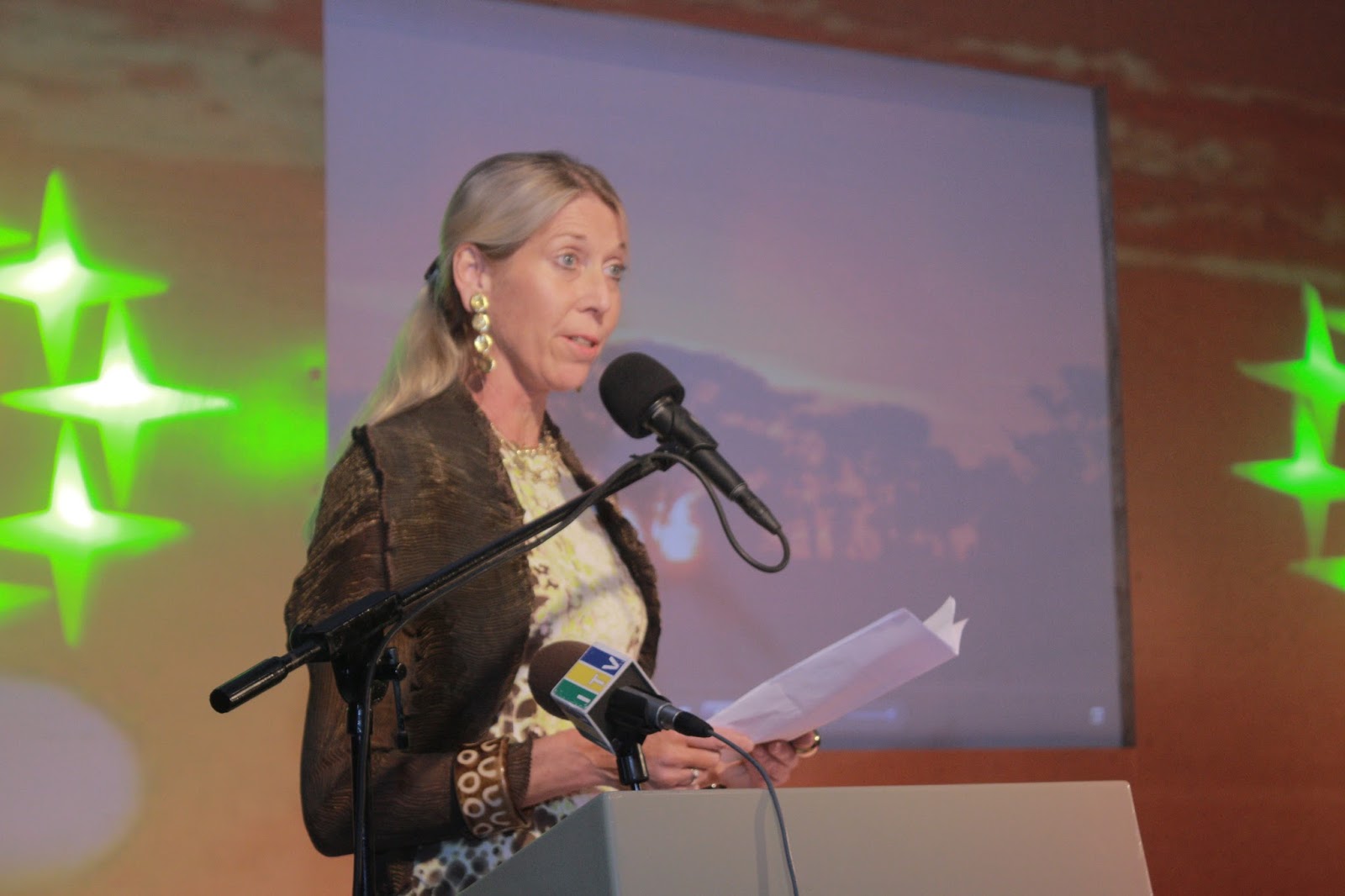 Mkurugenzi Mkuu wa SBL Helene Weesie akitoa hotuba ya  ufunguzi kwa wageni waliohudhuria tafrija mchapalo ya maadhimisho ya miaka 20  tangu kuanzishwa kwa bia ya Serengeti Premium Lager (SPL)  mwaka 1996.Pia kulizinduliwa chapa mpya ya Bia hiyo  .hafla hiyo ilifanyika siku ya alhamisi  katikaHOTELI ya Hyatt Regency Jijini Dar es salaam