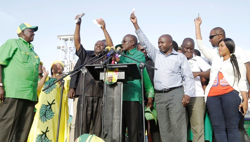 Mgombea Urais wa CCM Dkt John Pombe Magufuli akiwa sambamba na Katibu Mkuu