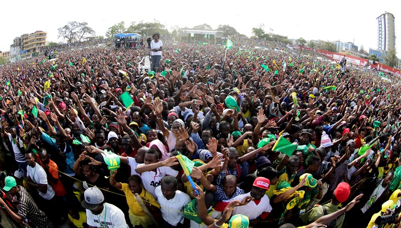 Umati wa Wakazi wa jiji la Arusha na Vitongoji vyake wakifuatilia hotuba zilizokuwa zikitolewa na Viongozi wa Chama cha Mapinduzi CCM wakati wa Kampeni za Kumnadi Mgombea Urais wa Chama hicho Dkt John Pombe Magufuli jijini humo.