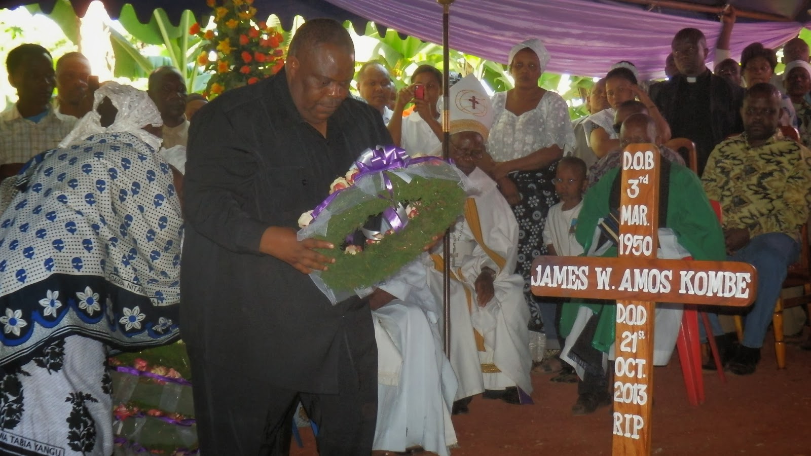 | Kamanda wa Polisi kilimanjaro, Robert Boaz na Kamanda wa Polisi Arusha, Liberatus Sabas (mwenye suti) wakiweka Ua katika Kaburi la aliyekuwa Mkuu wa kitengo cha Usalama Barabarani, Kamishna Msaidizi wa Polisi, James Kombe, aliyezikwa Jana Nyumbani kwake, kijiji cha Msae, Kata ya Mwika, wilaya ya Moshi Vijijini, mkoani Kilimanjaro. |