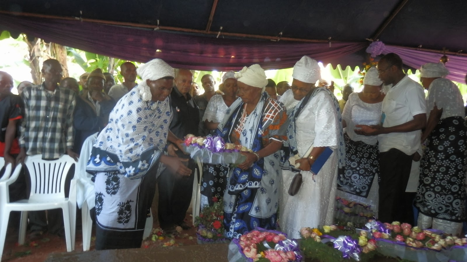 Mke wa Marehemu, Maria Kombe, akiweka Ua katika Kaburi la Marehemu mume wake, aliyekuwa Mkuu wa kitengo cha Usalama Barabarani, Kamishna Msaidizi wa Polisi, James Kombe, aliyezikwa Jana Nyumbani kwake, kijiji cha Msae, Kata ya Mwika, wilaya ya Moshi Vijijini, mkoani Kilimanjaro.