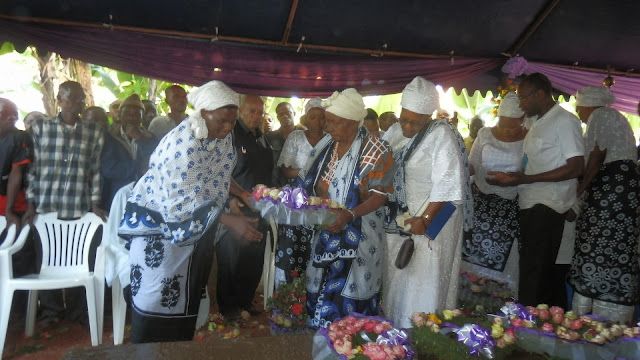 Wanafamilia wakiweka Ua katika Kaburi la aliyekuwa Mkuu wa kitengo cha Usalama Barabarani, Kamishna Msaidizi wa Polisi, James Kombe, aliyezikwa Jana Nyumbani kwake, kijiji cha Msae, Kata ya Mwika, wilaya ya Moshi Vijijini, mkoani Kilimanjaro.