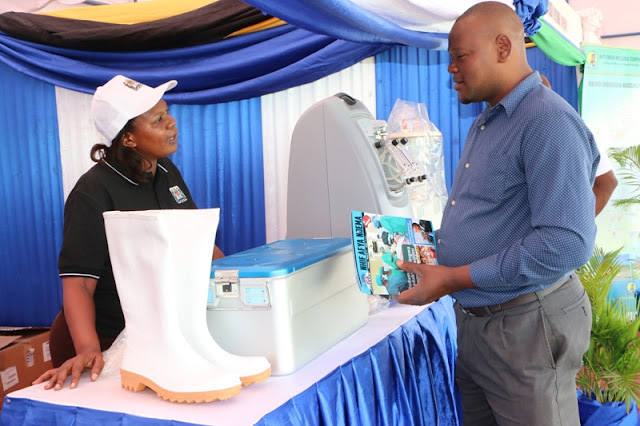 Ofisa Uhusiano wa MSD, Benjamin Massangya akiwa ndani ya banda la MSD.