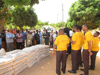 Mifuko ya Saruji ikishushwa tayari kwa ajili ya makabidhiano.