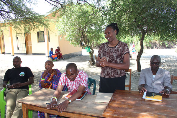 Stellah Julius kutoka Oxfam akizungumza  na wanakikundi cha NOSOTWA kutoka kijiji cha Engaresero