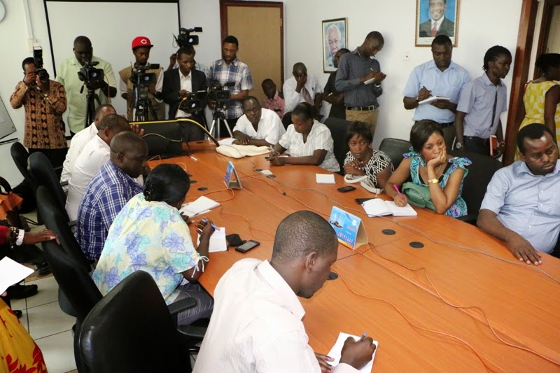 Mkurugenzi Mkuu wa Mamlaka ya Udhibiti wa Nishati, Maji na Mafuta (Ewura), Felix Ngamlagosi (kushoto), akizungumza katika mkutano na waandishi wa habari ofisini kwake Dar es Salaam leo, kuhusu mwenendo wa bei za mafuta nchini na katika soko la Dunia. Kulia ni Mkurugenzi wa Petroli, Godwin Samwel.