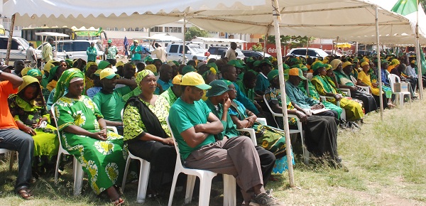 Wajumbe wa nyumba kumi wakimsilikiza Mangula alipozungumza nao kwenye Uwanja wa Nyamagana jijini Mwanza muda huu kabla ya kuhutubia mkutano wa hadhara baadaye kwenye Uwanja huo.