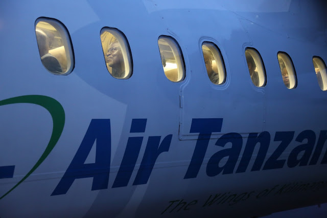 Rais wa Jamhuri ya Muungano wa Tanzania Dkt John Pombe Magufuli akitelemka kutoka kwenye ndege ya ATCL katika Uwanja wa Ndege wa kimataifa wa Abeid Amani Karume mjini Zanzibar leo jioni akitokea kisiwani Pemba