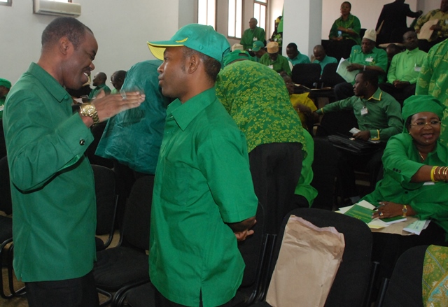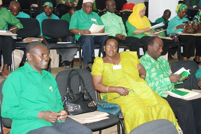 Wajumbe wa Halmashauri Kuu ya Taifa ya CCM (NEC), wakishangilia wakati wa hafla ya Mwenyekiti wa CCM, Rais Jakaya Kikwete kuzindua Baraza hilo