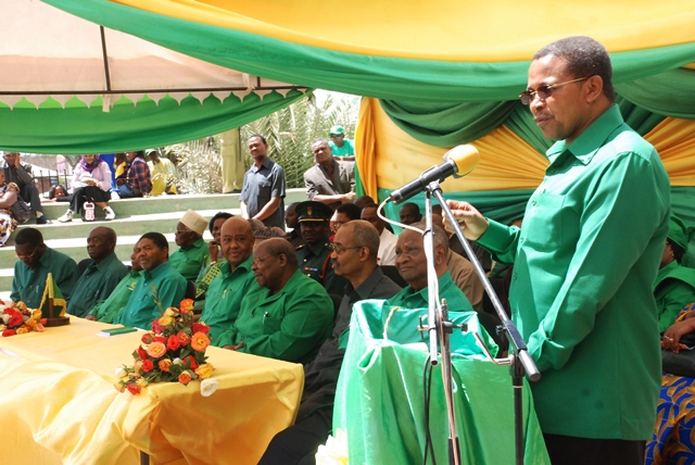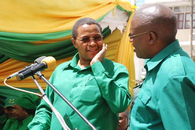 Mwenyekiti wa CCM, Rais Jakaya Kikwete akiongozwa na Katibu Mkuu wa CCM, Abdulrahman Kinana kwenda viwanja vya Makao Makuu ya CCM, mjini Dodoma leo kuzindua Baraza la Ushauri la Viongozi wastaafu wa CCM. nyuma ya Kinana ni Naibu Katibu Mkuu wa CCM (Bara) Mwigulu Nchemba.