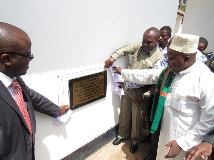 Mkuu wa mkoa wa Mwanza John Mongella, akizindua jengo la kituo cha One Stop Centre katika hospitali ya rufaa ya mkoa wa Mwanza, Sekour Toure.