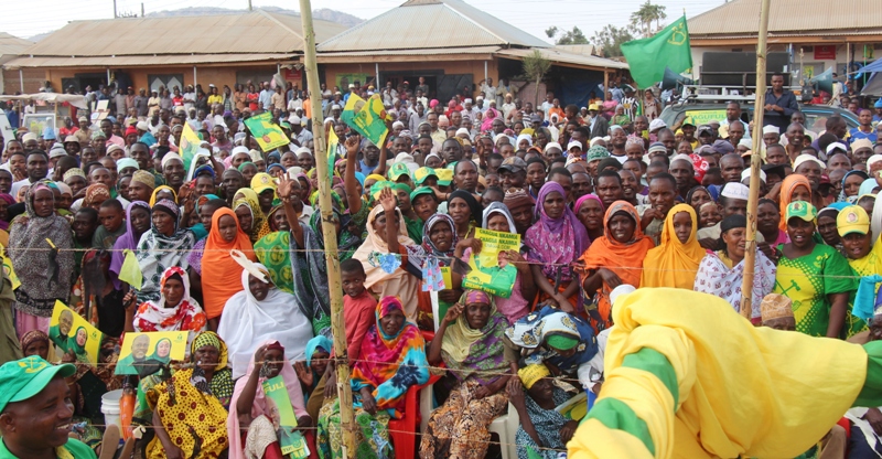 | Sehemu ya wanaCCM na wananchi waliojitokeza kwenye mkutano wa hadhara wa mgombea mwenza wa CCM, Bi. Samia Suluhu Hassan alipokuwa akinadi ilani ya Chama Cha Mapinduzi (CCM) katika Jimbo la Chemba, Wilaya ya Chemba. |
