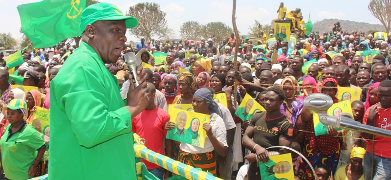 Mgombea mwenza wa Chama Cha Mapinduzi (CCM) nafasi ya urais, Bi. Samia Suluhu Hassan (hayupo pichani) akizungumza na wanachama wa CCM pamoja na wananchi wa Jimbo la Kiteto kwenye mkutano wa hadhara wa kampeni Mkoa wa Manyara.