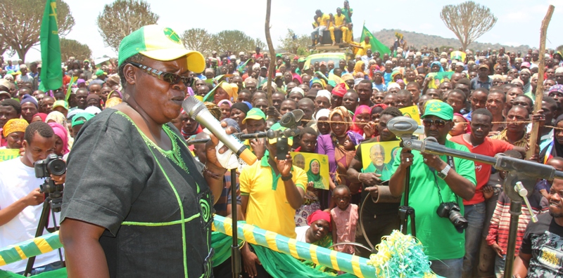 | Aliyekuwa mbunge wa Jimbo la Nkenge, Asumpta Mshama akizungumza na wanaCCM na wananchi katika mkutano wa hadhara Jimbo la Kilindi kunadi ilani ya CCM. |