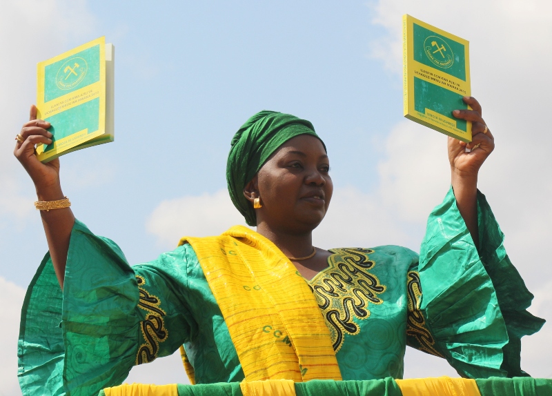 | Mgombea ubunge wa Jimbo la Kilindi, Mboni Muhita akionesha kwa wananchi nakala ya ilani ya uchaguzi ya chama hicho mara baada ya kukabidhiwa na mgombea mwenza kwenye mkutano wa hadhara wa kampeni Mkoa wa Tanga. |