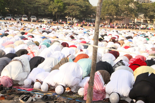 Waumini wa dini ya kiislam wakiwa kwenye swala hiyo.