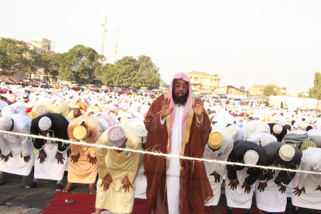 Sheikh Abdulkadir Mohamed akiongoza swala ya Ed- El- Fitr iliyofanyika Viwanja vya Mwembe Yanga Dar es Salaam