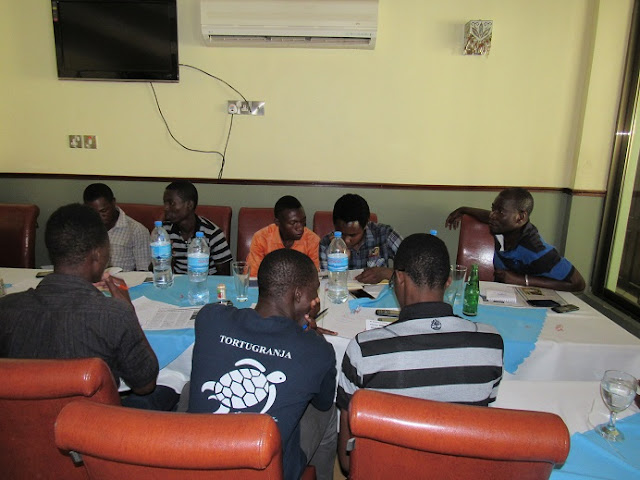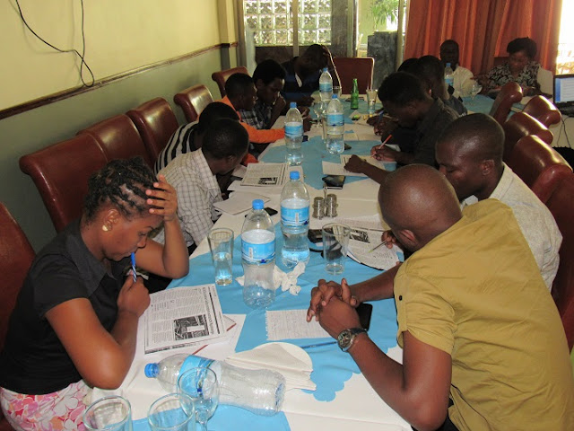 Wa kwanza kushoto ni Mkufunzi wa mafunzo hayo, Fredirick Katulanda, ambaye pia ni mhariri wa magazeti ya kampuni ya New Habari (2006) Ltd Kanda ya Ziwa.