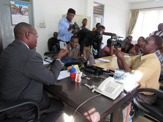 Mkuu wa Taasisi ya Kuzuia na Kupambana na Rushwa TAKUKURU mkoani Mwanza, Ernest Makale, akitoa taarifa ya kwa wanahabari kuhusu kukamatwa kwa mwanamke aitwaye Felister Mathias Mawe, kwa tuhuma za kujifanya askari wa Jeshi la Wananchi JWTZ na kuchukua fedha kwa baadhi ya watu Jijini Mwanza ili awasaidie kupata nafasi ya kujiunga na JWTZ kupitia maofisa anaofahamiana nao.
