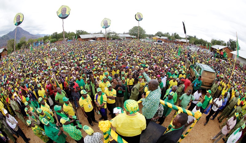 wakazi wa Same Magharibi wakishangilia mara baada ya kumsikiliza Mgombea Urais wa CCM Dk. Magufuli kwenye uwanja wa Kwasakwasa ambapo aliwaambia wananchi hao kuwa katika uongozi wake atahakikisha kodi ndogo ndogo zinaondolewa kwa wafanyabiashara wadogo.