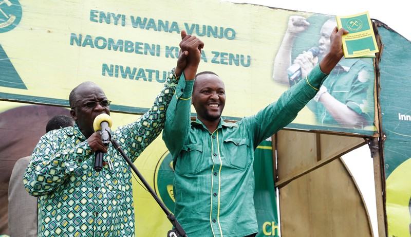 akimvalisha fulana mmoja wa wafuasi wa CHADEMA alieamua kurejea chama cha CCM jioni ya leo kwenye mkutano wa hadhara wa kampeni ndani ya jimbo la Same Mashariki