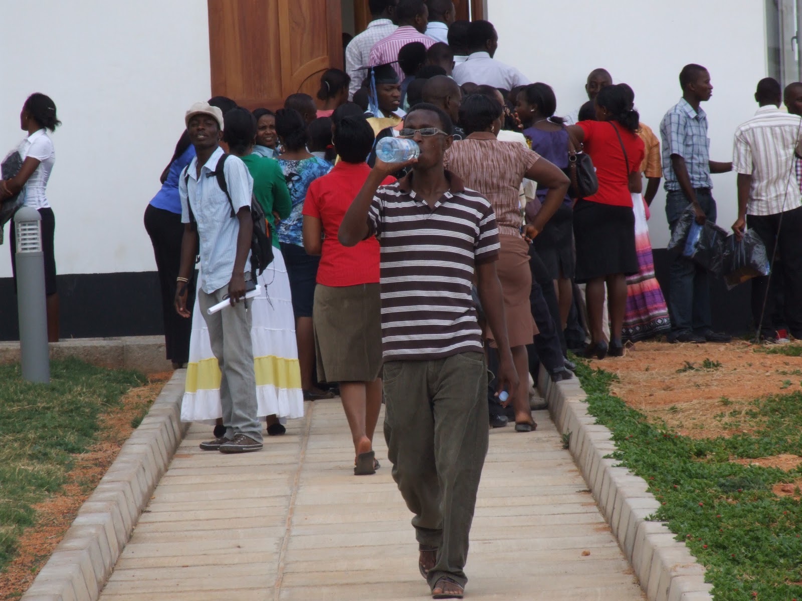 Wahitimu wa Chuo Kikuu Cha Dodoma UDOM kitivo cha Sayansi ya Jamii, Sanaa na Lugha wakiwa kwenye foleni ya kuchukua majoho tayari kwa kuhudhuria sherehe za mahafali ya tatu ya chuo kikuu cha Dodoma yanayotarajia kufanyika tarehe 21 na 22 Novemba 2012 katika viwanja vya Chimwaga
