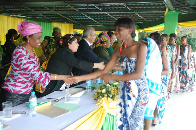 Vijana wanaoshiriki Miss Kanga Party ya Kibaha, wakisalimiana na wageni wa heshima kwenye sherehe hiyo.
