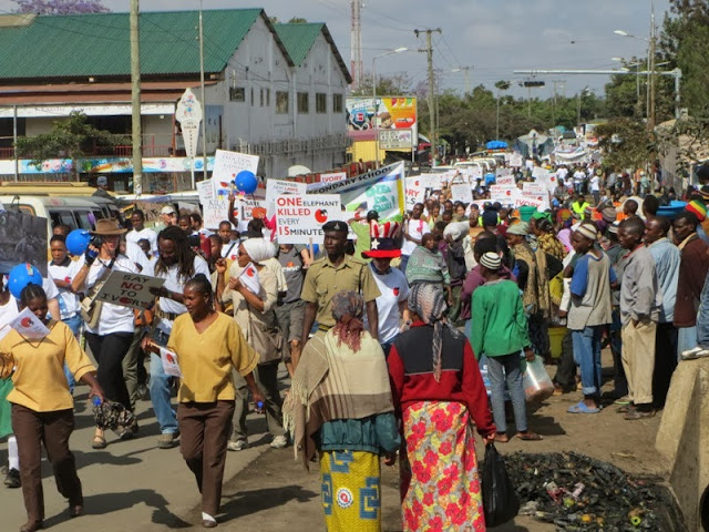 Ma elfu ya Wananchi kutoka Arusha pamoja na wadau wengine kutoka Mikoa na nchi mbalimbali wakiwa katika Matembezi ya siku ya Tembo Duniani yaliyo Fanyika Arusha.