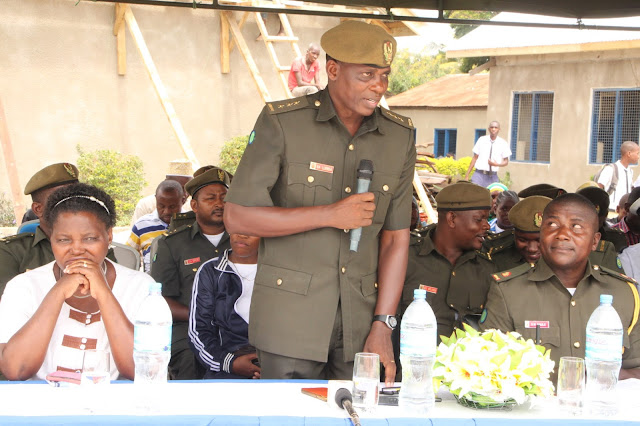 Makamu Mkuu wa Shule Utawala, Kepteni Benitho Lubila, akitoa hutuba fupi kaba ya kumkaribisha mgeni rasmi.