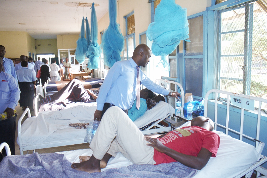 Wafanyakazi wa Benki ya NMB,tawi la Nelson Mandela wakitoa zawadi mbalimbali zikiwemo Sabuni za kufulia,sabuni za kuogea ,dawa za meno,maji ya kunywa na vingine vingi kwa wagonjwa waliolazwa kati wodi mbalimbali hospitali ya rufaa ya mkoa ya Mawenzi.