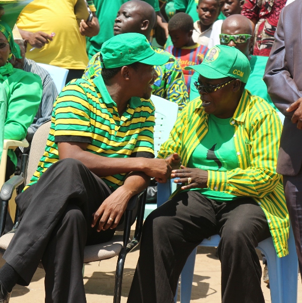 Adam Malima (kulia) na Dk. Seif Mohamed wakijadiliana jambo. |