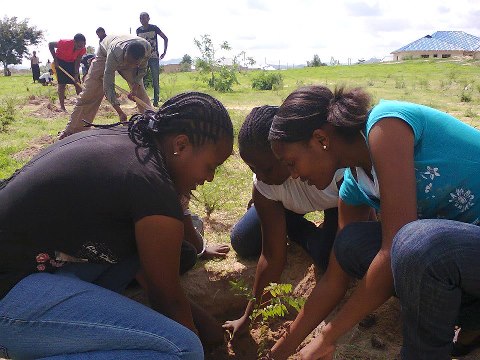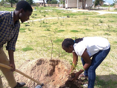 Wanafunzi wa Shahada ya Kwanza ya Sosholojia ya Chuo Kikuu Cha Dodoma (UDOM) wakipanda miti katika Shule ya Sekondari ya Itenga iliyopo Nkuhungu wilaya ya Dodoma Mjini Mkoani Dodoma.