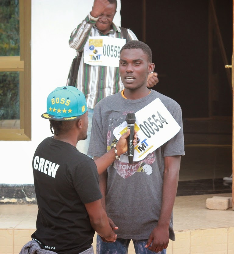 Mshiriki namba 00554 akihojiwa na msanii Joti mara baada ya kufanikiwa kuingia hatua ya tatu hapo kesho ambapo watapatikana washindi kumi na tano bora na hatimaye kupata washindi watatu bora wa kanda ya kati ambapo kila mmoja atajinyakulia kitita cha shilingi laki tano za kitanzania.