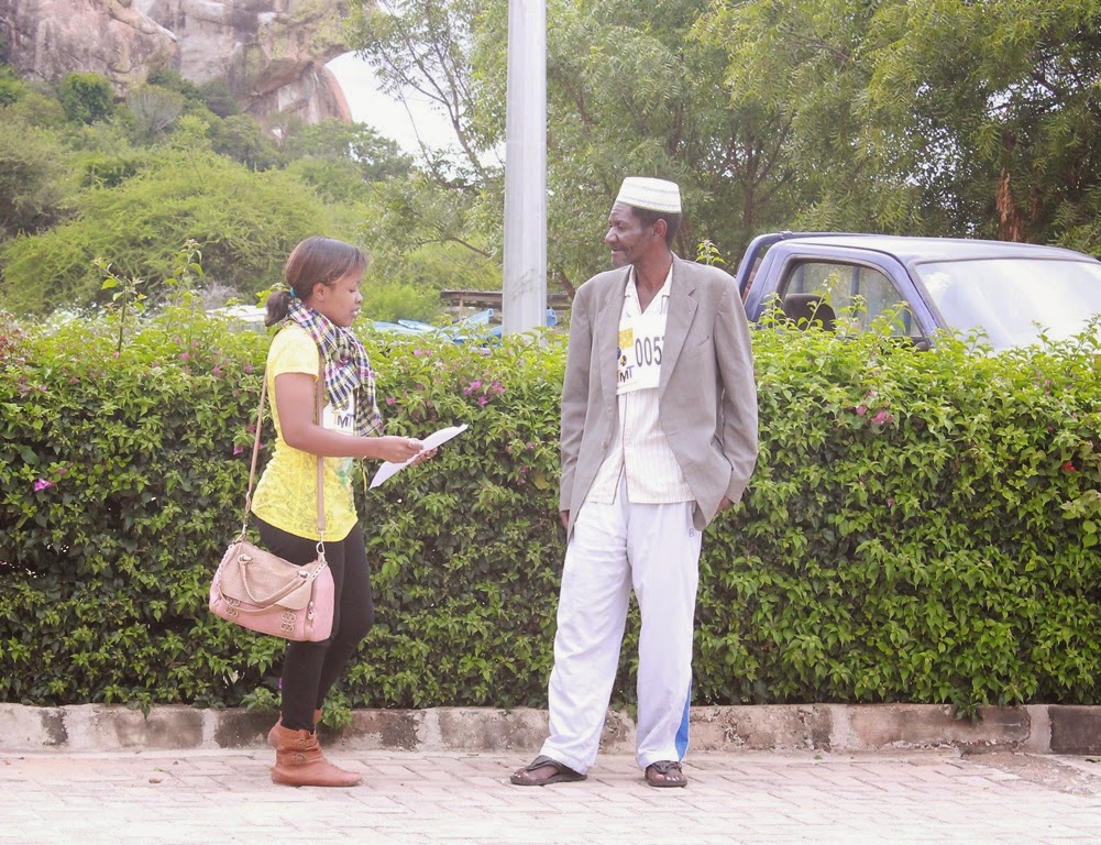 Mmoja wa washiriki wa shindano la Tanzania Movie Talents akihojiwa na Msanii Joti mara baada ya kufanikiwa kuingia hatua ya tatu hapo kesho huku mjukuu wake pia akifanikiwa kuingia hatua hiyo pia.