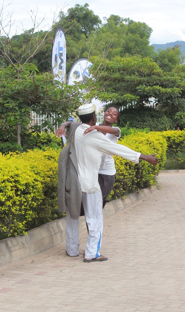 Washiriki wa Shindano la Tanzania Movie Talents ambao ni babu na mjukuu wake kiuhalisia wakipongezana mara baada ya kufanikiwa kuingia hatua ya tatu ya kutafuta washiriki 15 bora na hatimaye kupatikana washindi watatu bora wa kanda ya kati ambapo kila mmoja ataondoka na kitita cha shilingi laki tano za Kitanzania.