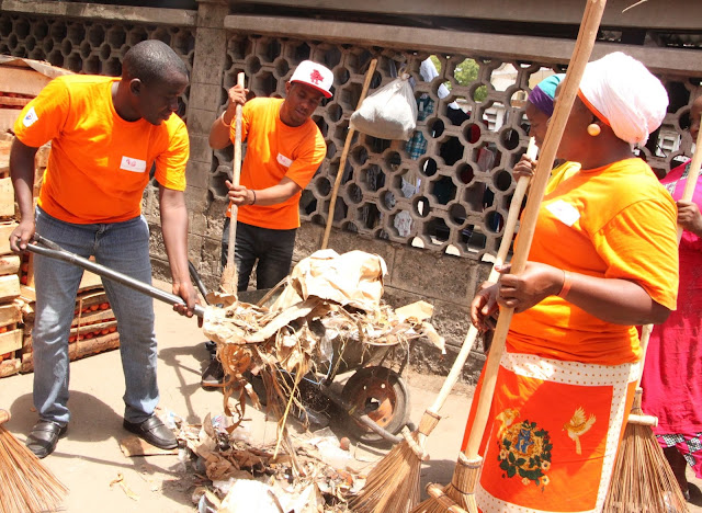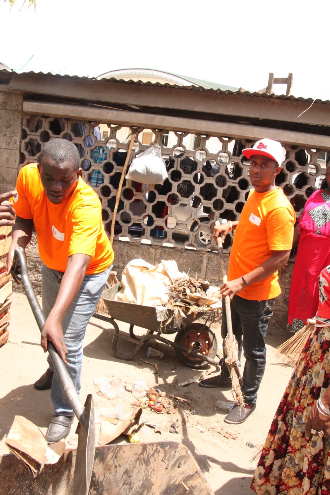 Ofisa Ufuatiliaji na Tathmini wa Shirika la Equality for Growth (EfG), Shaban Rulimbiye (kushoto) na Charles Beatus wakifanya usafi.