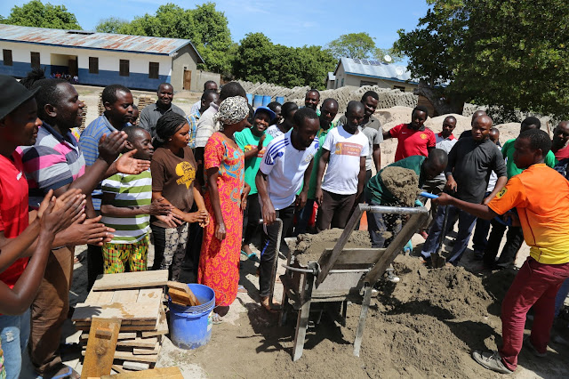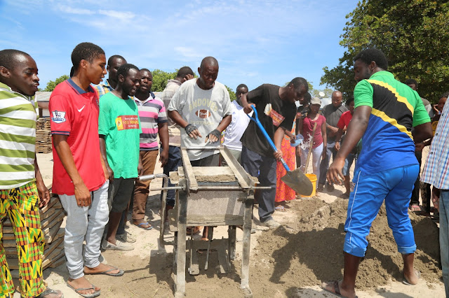 Leo wamekutwa wakifanya kazi hiyo nzito huku wakihamasika kwa nyimbo wakiongozwa na Mkuu wa Wilaya ya Mkuranga Mhe. Filbert Sanga (wa pili kulia). Vijana hao, 14 wakiwa wanawake na 39 wanaume, walikubaliana kupiga kambi shuleni hapo toka Septemba 27, 2016 na kufanya kazi hiyo ya kujitolea bila malipo kwa moyo mmoja na kufanikiwa kufyatua matofali hayo. Kambi hiyo inatarajiwa kufungwa kesho Jumamosi Oktoba 29, 2016 na Waziri wa Elimu, Sayansi, Teknolojia na Ufundi Profesa Joyce Ndalichako.