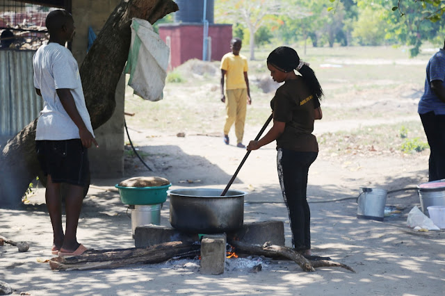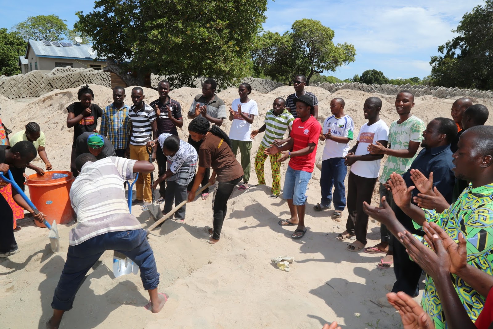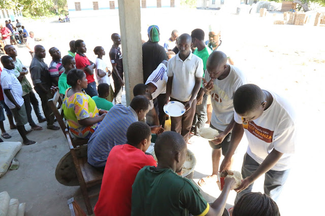 Vijana hao wasomi 53 wakipata msosi baada ya kukamilisha kufyatua matofali 45,000 kwa ajili ya mabweni matano na nyumba tano za walimu Shule ya Sekondari ya Nasibugani wilayani Mkuranga mkoa wa Pwani.