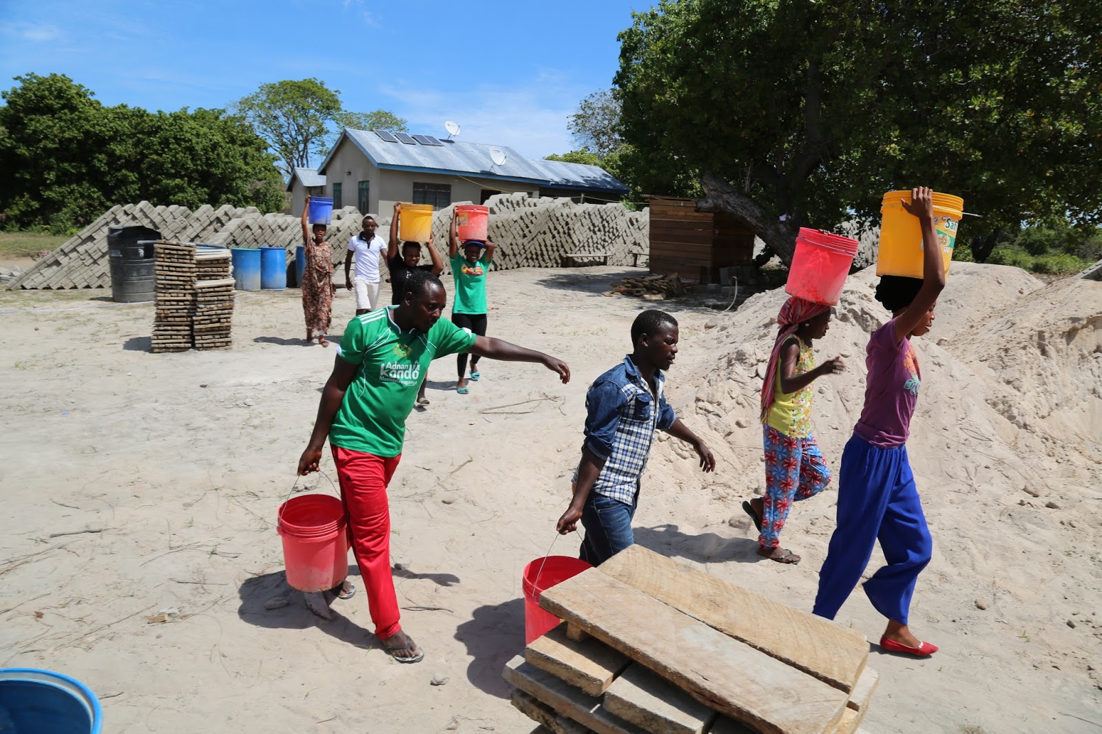 Sehemu ya vijana hao wasomi 53 wakichota maji ili kukamilisha kufyatua matofali 45,000 kwa ajili ya mabweni matano na nyumba tano za walimu Shule ya Sekondari ya Nasibugani wilayani Mkuranga mkoa wa Pwani.