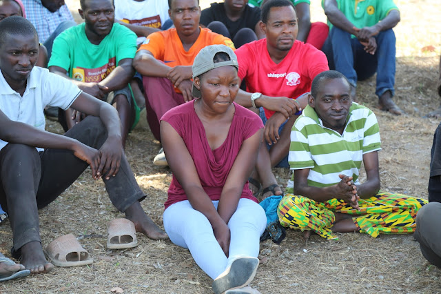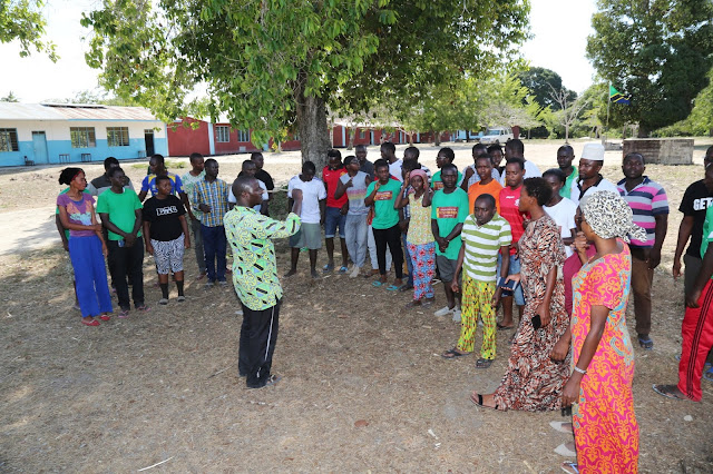 Kijana mzalendo Petro Mgoti (suruali ya njano) akisema machache. Yeye alikuwa katika ziara ya mafunzo ya wiki sita nchini Ujerumani, na aliporejea nyumbani alienda moja kwa moja kujiunga na wenzie huko Mkuranga.