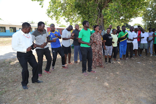Mkuu wa Wilaya ya Mkuranga Mhe. Filbert Sanga akitoa maelekezo kwa vijana hao wasomi 53 baada ya kukamilisha kufyatua matofali 45,000 kwa ajili ya mabweni matano na nyumba tano za walimu Shule ya Sekondari ya Nasibugani wilayani Mkuranga mkoa wa Pwani