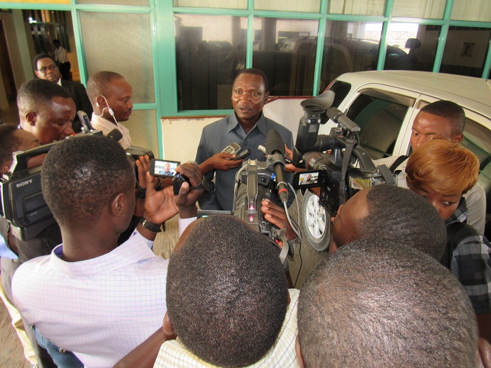 Kaimu Kamishna Msaidizi wa Madini Kanda ya Ziwa Victoria magharibi, Mayigi Makobela, akizungumza na wanahabari nje ya Mafunzo ya Watetezi wa Haki za Binadamu yanayofanyika Jijini Mwanza.